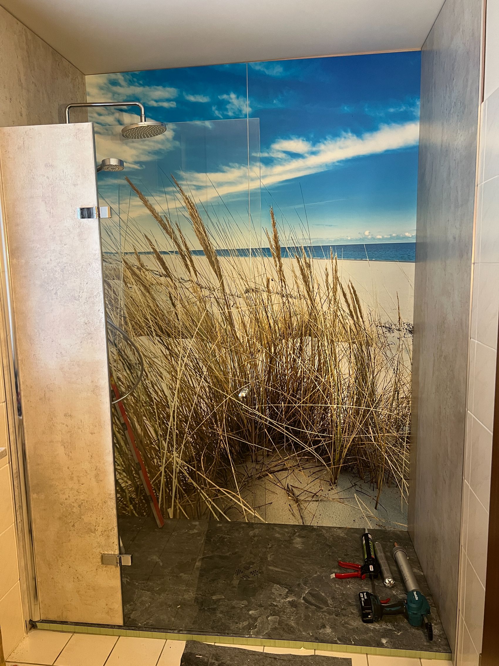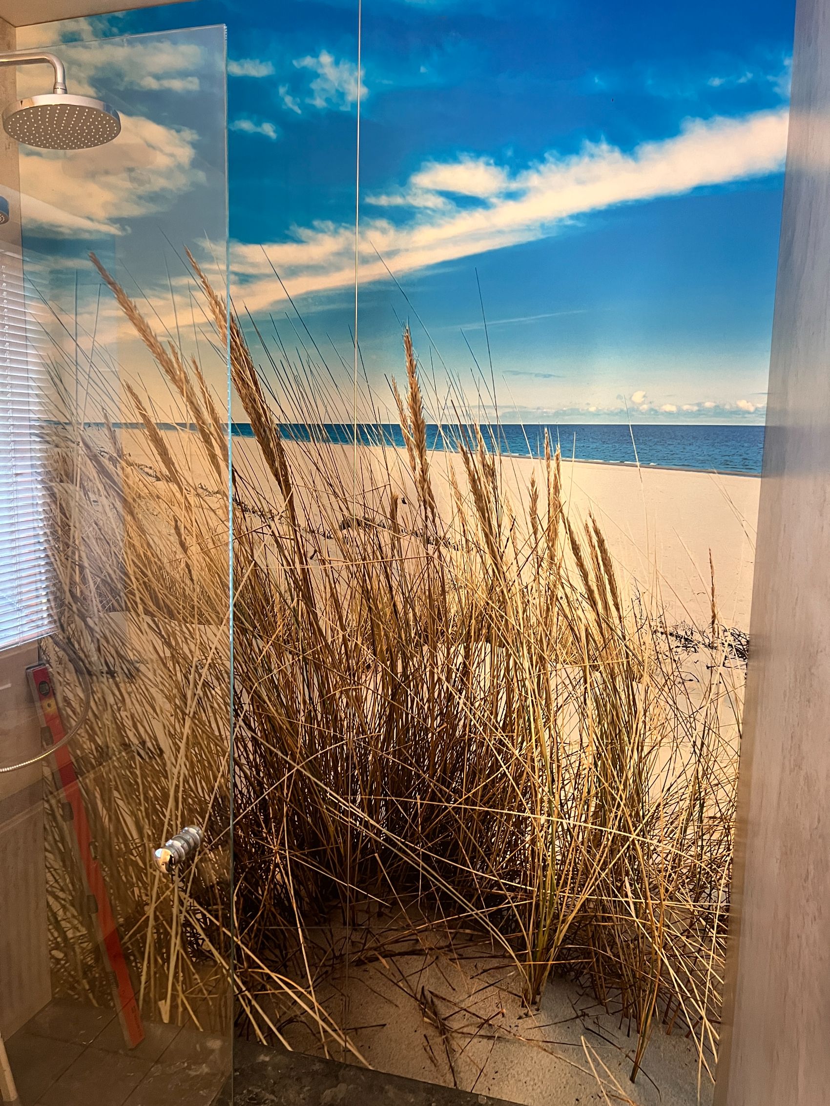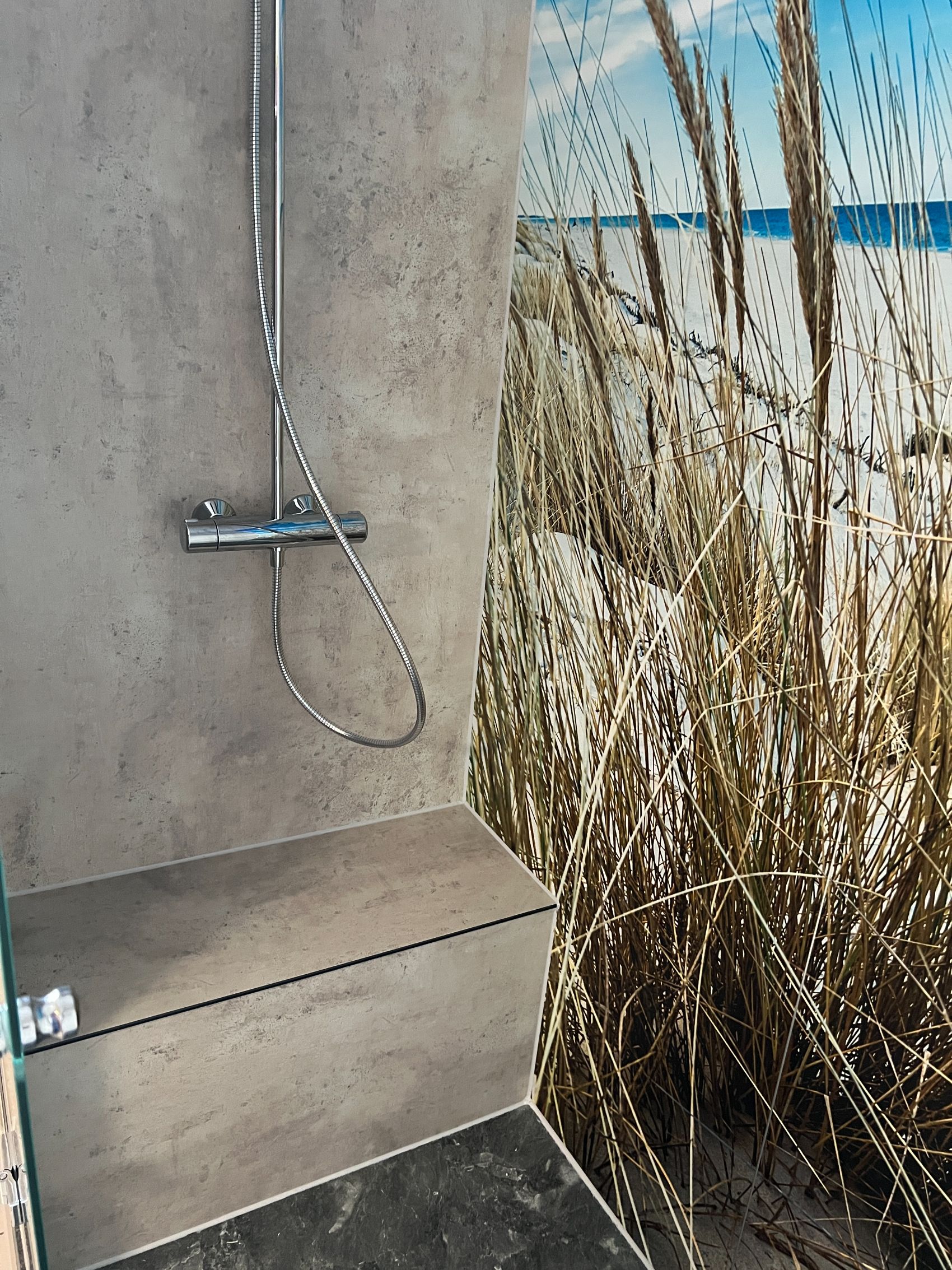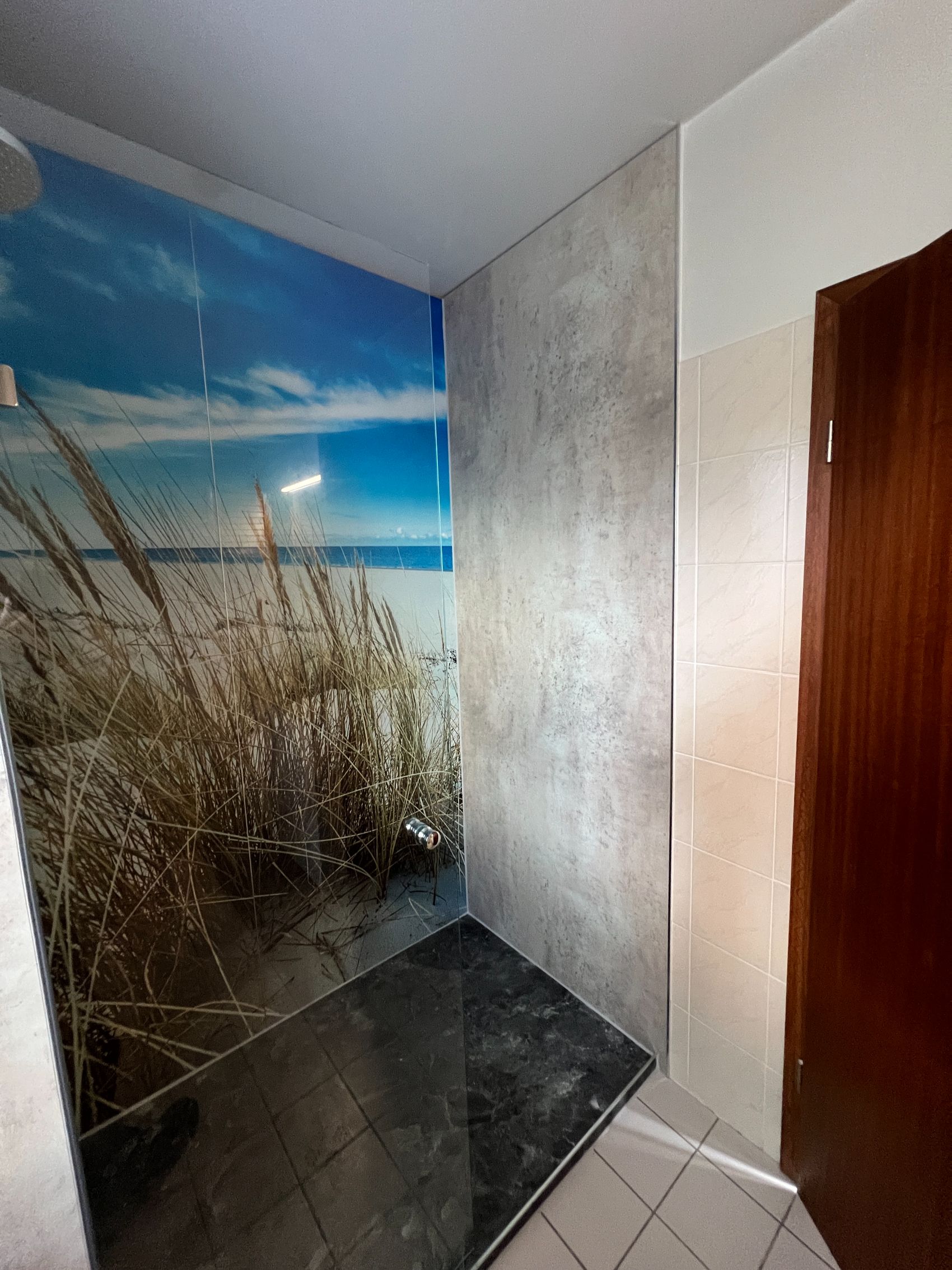 In Lütjensee wurde ein besonderes Badprojekt realisiert, das Urlaubsgefühle direkt in die eigenen vier Wände bringt. Durch die Verwendung eines großformatigen Motivs mit Strandidylle hat sich das Badezimmer der Familie Stehle in eine wahre Wohlfühloase verwandelt, deren ästhetische Wirkung die Erwartungen der Kunden weit übertroffen hat. Die großzügige Duschfläche von Duschking im warmen Farbton „Neide“ ist optisch perfekt auf das Strandmotiv abgestimmt und bietet dank ihrer rutschhemmenden Oberfläche maximale Sicherheit beim täglichen Duschvergnügen.