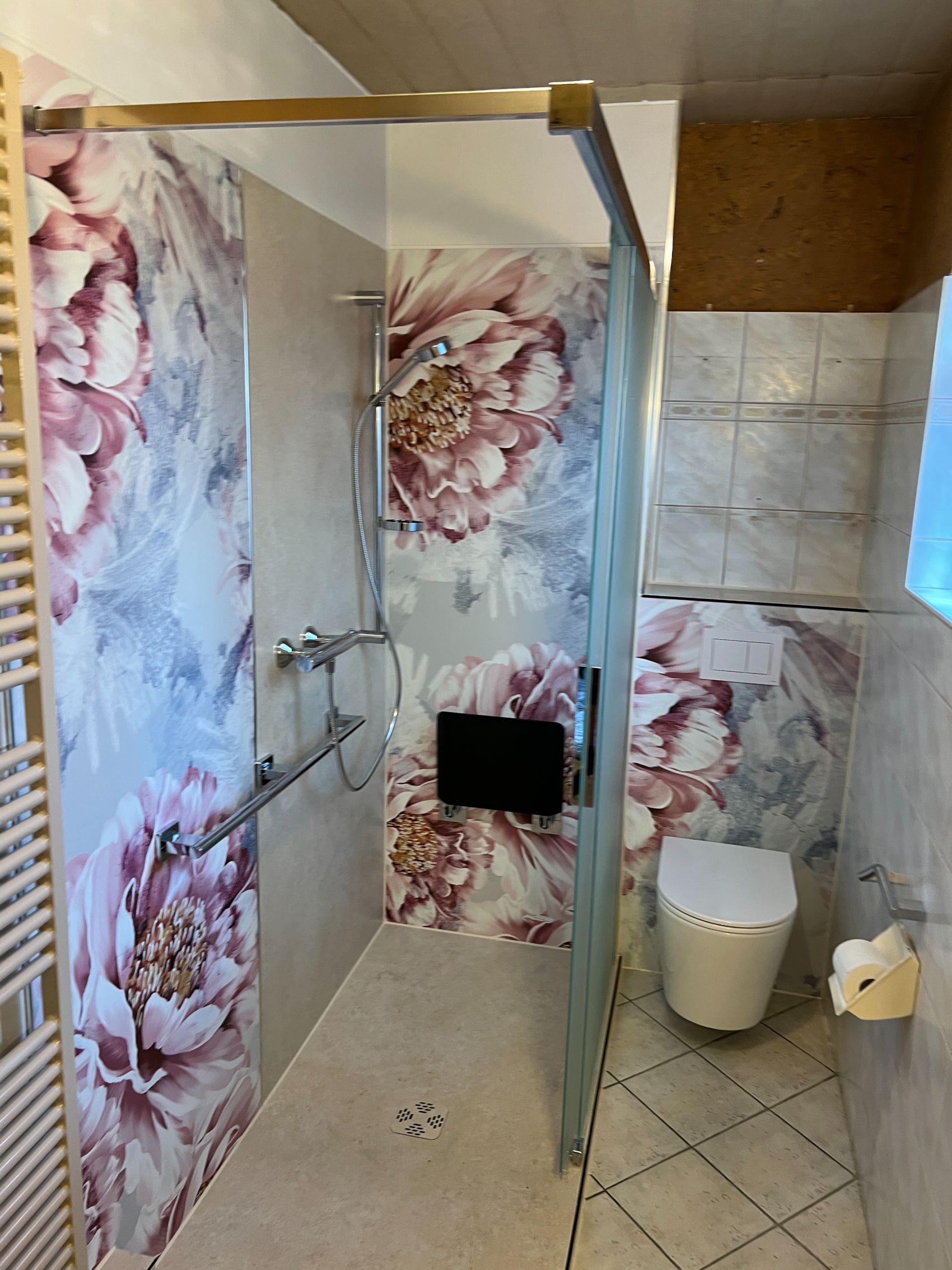 Die Wandgestaltung erfolgte mit den großformatigen Wandpaneelen von Duschking, die eine fugenlose und somit besonders pflegeleichte Lösung bieten. Diese Paneele verhindern effektiv die Schimmelbildung in herkömmlichen Fliesenfugen und harmonieren perfekt mit der neuen, barrierefreien Raumaufteilung. Die Kombination aus technischer Präzision bei der Installation und der Auswahl langlebiger Materialien garantiert eine zukunftssichere Nutzung, die den Anforderungen an ein modernes, barrierefreies Bad in jeder Hinsicht gerecht wird.