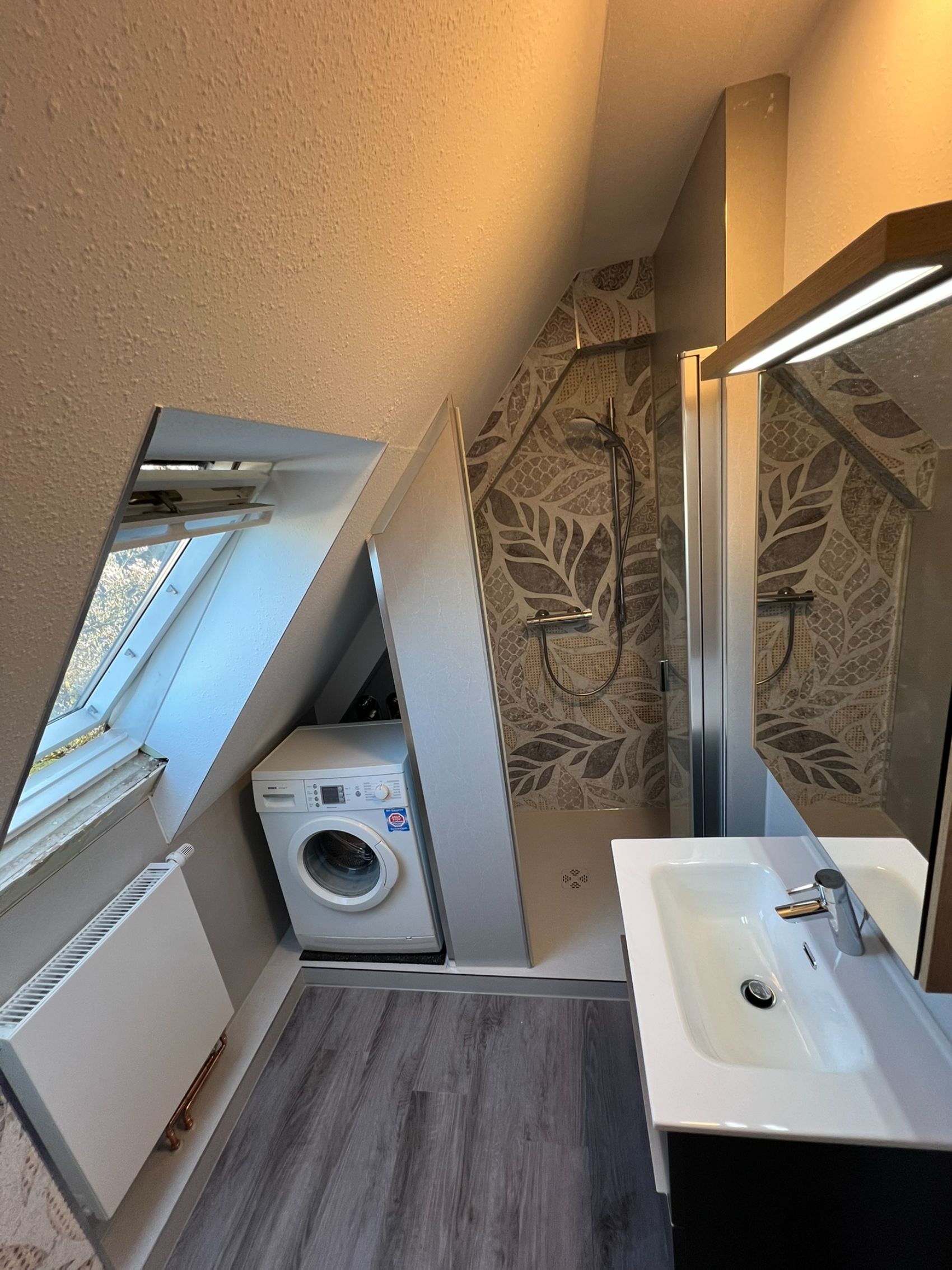 In Trittau wurde dieses Badezimmer innerhalb von nur sechs Tagen durch eine Komplettsanierung in eine moderne Wohlfühloase verwandelt. Ein besonderer Fokus lag auf der Effizienz des Umbaus: Die alte Badewanne wurde durch eine großzügige, fugenlose Duschlösung ersetzt, während die Modernisierung des WCs auf ein wandhängendes Modell in nur einem einzigen Tag abgeschlossen wurde. Für den Kunden bedeutete dies eine minimale Einschränkung, da der Verzicht auf das WC auf lediglich 24 Stunden begrenzt werden konnte.